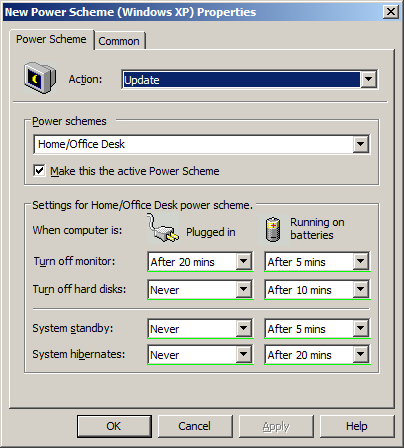 Windows XP Power Plan