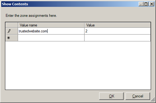 Now if you do configure this option it is likely that some legitimate sites on the locally and on the Internet may break so workaround that issue you can explicitly add them to "Trusted Sites" zone. To do this again open the Users GPO and navigate to the Configuration > Policies > Administrative Templates > Windows Components > Internet Explorer > Internet Control Panel > Security Page and then open the "Site to Zone Assignment List " setting and click "Enabled" then click the "Show" button.