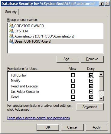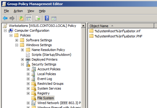 Now repeat the steps above and this time select "C:\Windows\Inf\Usbstor.pnf" You should see something like the images below in your group policy.