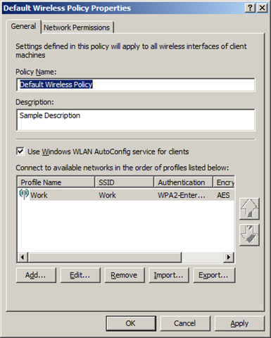 Note: You can only create one Windows Vista and later and one Windows XP wireless setting within each GPO.