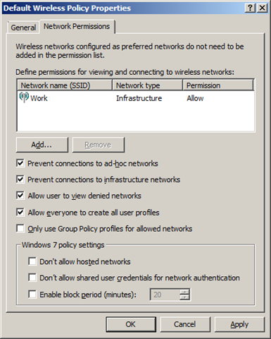 I have seen an number of posts form IT Administrators on the Microsoft Group Policy forums asking how prevent their users from connecting to a wireless network. Maybe it is because they have an open WIFI network on the floor above that users keep connecting to so they can by pass the proxy server URL restrictions or they don't want their users from accessing the internet from well known WIFI hot spots.