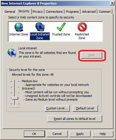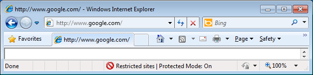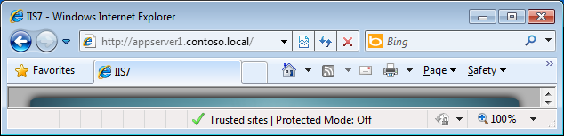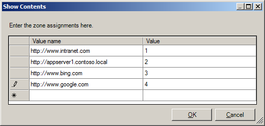 Now the Internet Explorer Site zone list will now be populated with the zone you configured above and as you can see in the images below the Internet Explorer status bar now show the correct zone based on the that the URL's in the address bar.