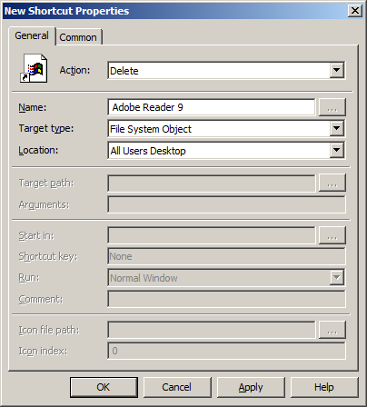 So below I go through how to use one of the new Group Policy Preferences options is called "Shortcuts" to remove the icon when ever it is re-instated (see below). While in this example I use (pick on) Adobe Reader it can also be used as a guide for removing any other shortcut that you so desire.