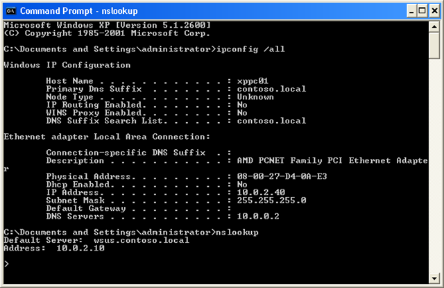 Note: When this setting is applied its a little bit tricky to confirm that it has actually applied as both the network properties (see figure 2.) and even and ipconfig /all will show the manually configured IP DNS setting (see figure 3.). However if you do a NSLOOKUP (also see figure 3.) you will notice that the DNS server that it uses is the DNS Server that is configured in the Group Policy or alternatively you can just rely upon an rsop.msc report.