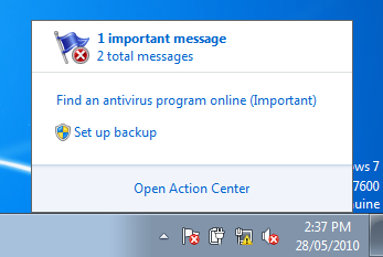 In my previous post we were able to disable the Action Center notification by simply turning off the "Set up backup" message under the Maintenance section of the Windows 7 Action Center.