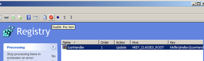 We now want to disable this entry as we are going to use to to restore the Icon Handler once you the patch for this issue is out.