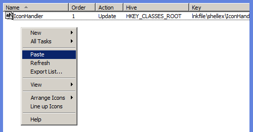 First we are going to create a policy that we can use at a later stage to restore the icon handler. The value that we are