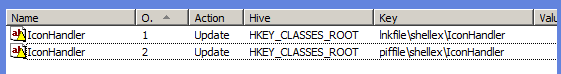 Step 12. Double click on IconHandler 3 & 4 and change the "lnkfile" in the Key Path to "piffile" (should now look like below image).