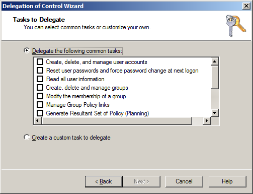 | What I will show you how to do is how to perform some of the common delegation tasks that the "Delegation of Control Wizard" using a PowerShell command so you can automate the process for creating new OU's in your environment. I know this is not strictly an Group Policy topic but it is one closely related and one I think many Group Policy admins will find useful. The Command tasks I will show you are the one's that I almost exclusively use when delegating permissions to Active Directory, they are: |
