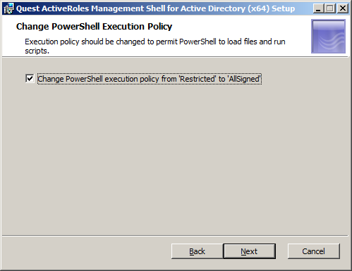 Step 4. Click "Next" Note: By ticking the "Change PowerShell execution policy from 'Restricted' to 'AllSigned' you are relaxing the execution policy of PowerShell. However you will still need to turn this off entirely for the testing of your script.