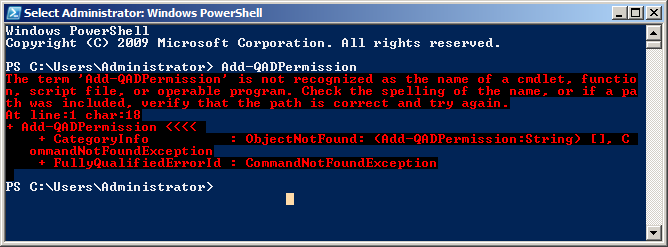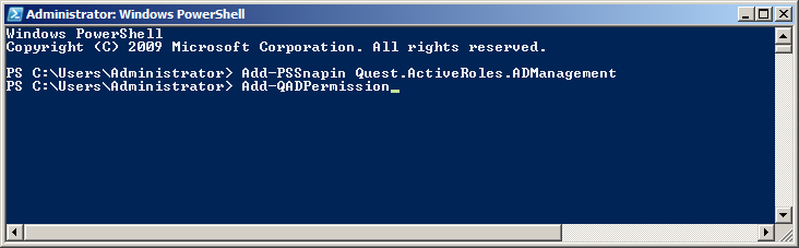 Step 1. To run the add-QADPermissions PowerShell command click on the PowerShell shortcut (that blue one in the taskbar if you are running 2008/R2).