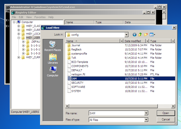 To help mitigate this I have also written an article that explain a way to more securely apply the new password to all the computers (see How to use Group Policy Preferences to change account Passwords ) but even if you did this on a regular basis you would still need to tell all the IT support staff what the new password is when you change the password and thus people quickly learn the local admin account credentials all over again... Note: That all being said it is still a really good idea to set a password for the local administrator account as the default password is configured as blank. The other solution you might think of is to boot the computer using a third-party tool that can reset and enable the local admin account (see http://www.bing.com/search?q=sethc.exe+%22windows+7%22+administrator+password&form=QBRE&qs=n&sk= ) however these tools don't work if your local drive is encrypted with BitLocker nor are they supported from Microsoft (see Microsoft policy about lost or forgotten passwords ).