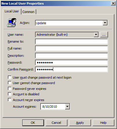 But even so, this would also mean you have to know the username and password of the account at the time they last logged onto the computer. This may be a bit hard to do as they may have changed their password a number of times since they logged on to that computer. Unfortunately, it is also much more unlikely now that the normal local user of the computer has not been given local admin due to all the improvement with Windows 7 (e.g. UAC) that allows users to work with standard user permissions. Now you might think the really obvious solution is to just enable the local administrator account and set a password in advanced using Group Policy Preferences (see below) so that you can use it when you need to however doing this has a few security issues.