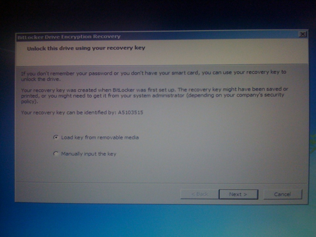 - The BitLocker recovery key for the local system drive. (see instruction on how to get the key from here How to use Group Policy to save "BitLocker to Go" recovery keys in Active Directory — Part 1 )