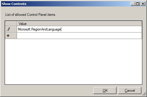 Paste the name into the value field enter the canonical name of the control panel item you want to show in the Value field and click OK.