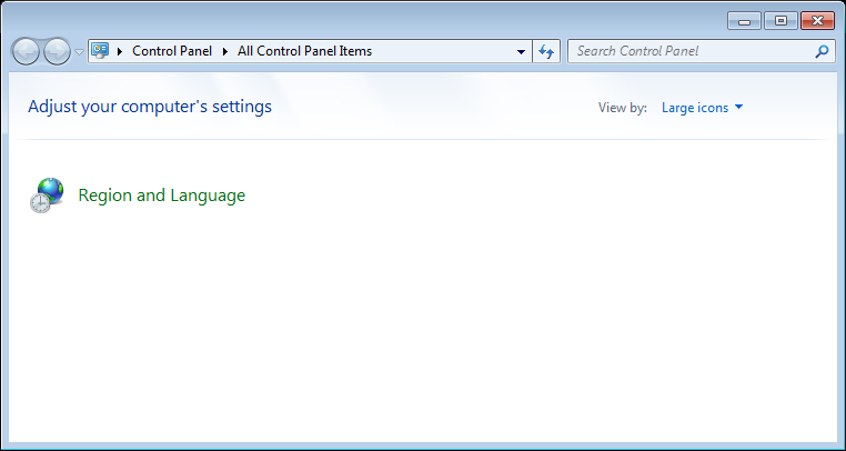 You will now see that the only available control panel item is the Region and Language options (see below).