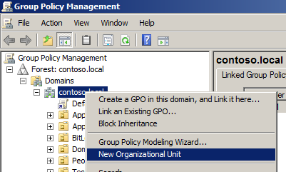 You may also be aware that the Group Policy Management Console also has as option to create new new Organisation Unit (see below).