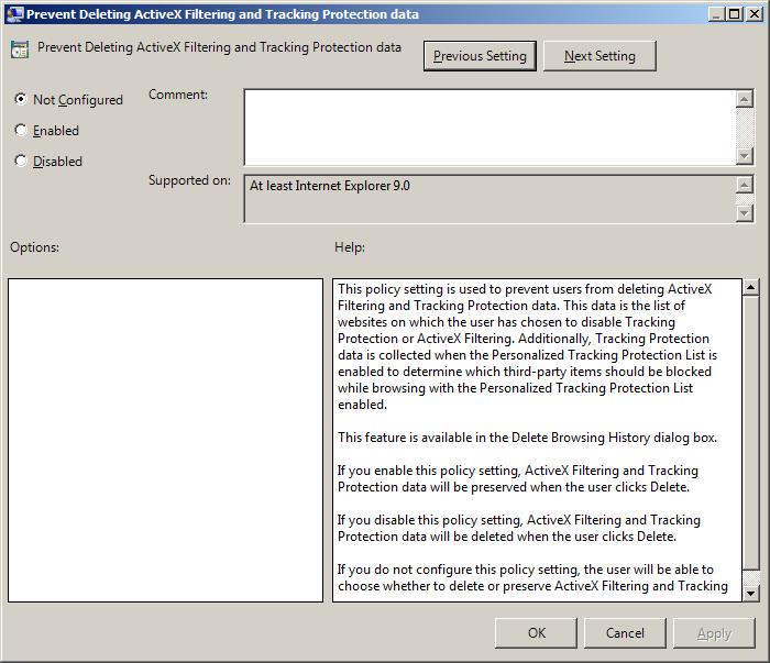 - Prevent Deleting ActiveX Filtering and Tracking Protection data
