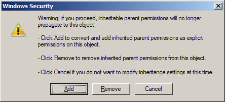 Step 11 (Optional): Un-tick "Include inheritable permission from this object's parent.