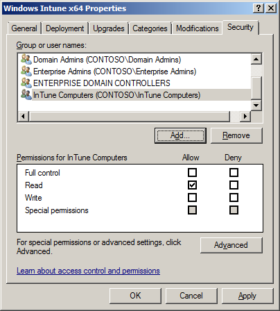You have now setup the installation files for the InTune client (or other software) ready to be deployed in your organisation. Tip #2: This location needs to have read permission for the "Domain Computers" group applied so that the computer can download and install the files.