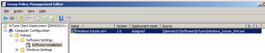 Originally this was just going to be a post showing you how to deploy the Windows InTune client to a computer using Group Policy however it turned out I think this article would be best suited to show you how to use some advanced techniques to deploy software via Group Policy. So even if you don't want to specifically deploy the InTune software client to your computers this article will still serve you as a good reference for Group Policy software deployment in general... Tip #1: DONT! If at all possible do not deploy software this way... Group Policy software deployment has a number of restrictions that makes this one of the less desirable methods of software deployment. Some of the reasons why I would not recommend this deployment method are:
