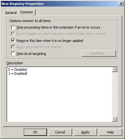 Step 4. Click on the common tab and tick "Remove this item when it is no longer applied" and add a description.
