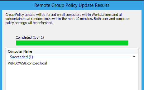 You have chose to force a Group Policy update on all computers within Workstations and all sub containers.