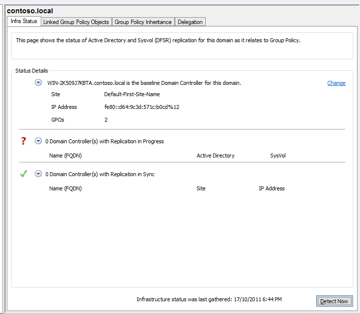 Group Policy Infrastructure Status