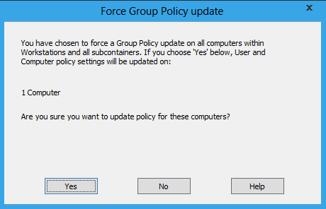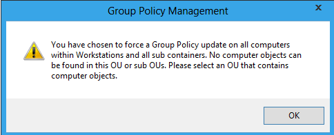 After click yes it has found the "real" computers in the OU and forces a Group Policy update to run within two minutes on these computer.