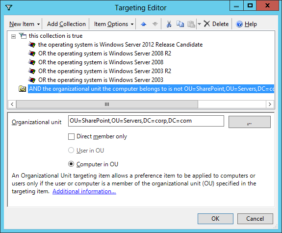 Step 3. Option #2 would be to target the setting to NOT apply if the server computer account is in the "SharePoint Servers" security group. This option is more suited if you have servers spread out over your organisation.
