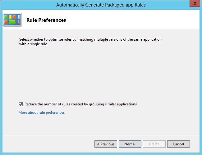 Once you click "Create" it will generate an allow rule for each Packaged App that is install on your computer... You can then manually edit this list to your desired configuration.