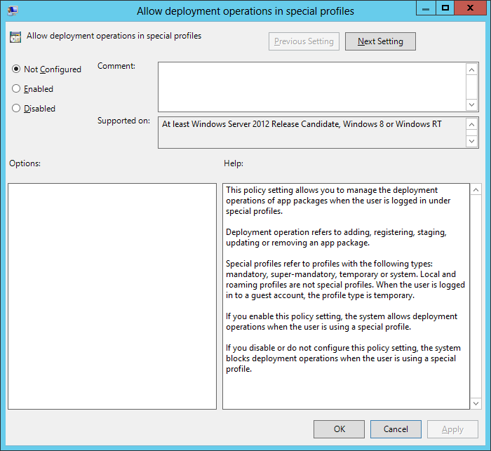 Hopefully these new features will help you manage you Packaged Windows 8 Apps in your environment. While I am still not sure how you actually install and remove apps for users automatically for users at least you now know you do have the option to open it up, lock it down or just granularly control certain apps in your Windows 8 environment.