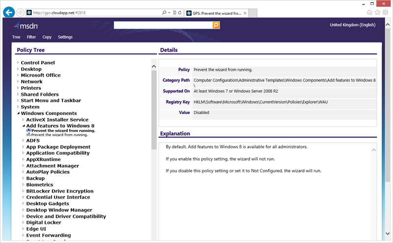 If you are like me and are forever forgetting the name or exact locations of that Group Policy setting you know exist but just can't remember you will be glad to know that the Group Policy Search Engine has now been updated. This web site allows you to quickly search for all of the Windows and Office group policy setting with a handy summary of the setting along with the registry key and category it exists. Thankfully the site has now been updated to include all the Windows 8 and 2012 settings along with a few navigation improvements.
