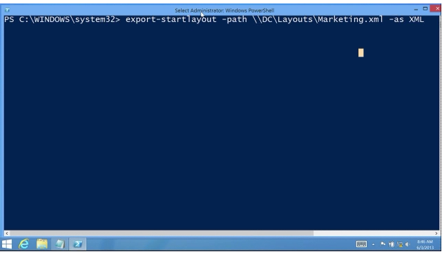Step 2. Export the Start Screen Layout using the "export-startlayout" PowerShell command.