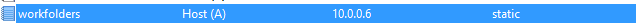 This means a user with an email of username@domainname.com will need to have a DNS record (see image below) of workfolders.domainname.com setup that points to the discovery work folder server. While the setup of the DNS address for work folders address is not mandatory if you are using group policy (or SCCM) to configure the URL it does make it a lot easier for setting up if you have a mixture of non-domain joined (non managed) devices and domain joined devices.