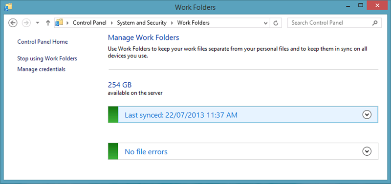 Work Folders is a great new server role feature with Windows Server 2012 R2 that allows your end user to sync their files over multiple device at work and at home. Think of it as SkyDrive hosted on Windows Server in your own server room rather than by a third party. While there are a lot more technically impressive features in the new OS I think this will be the one that that will get the most traction. The ability for you to now host your own "private cloud" file synchronisation service but do it in a way that is secure and manageable is going to be the greatest thing since you could get email via ActiveSync. In the following post I will show you how to setup this new feature automatically via Group Policy so that you client workstation can automatically (or on demand) to simplify the setup for your users.
