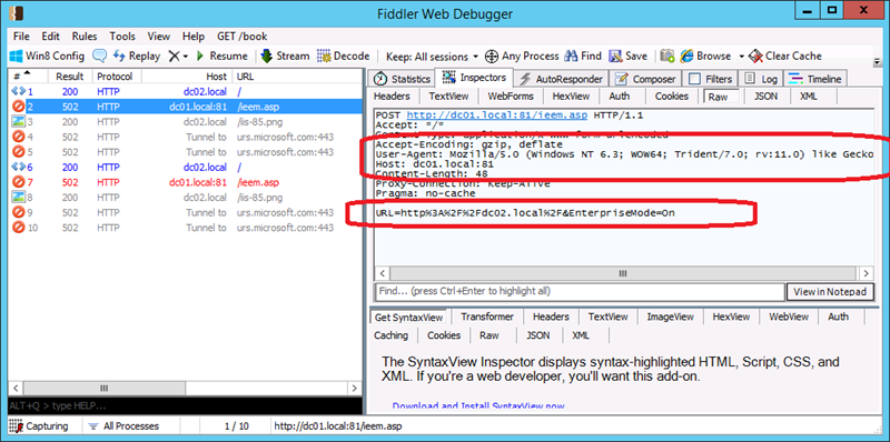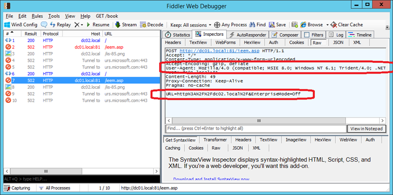 This unfortunately does not explain how to setup an end point server to listed for these incoming POST messages that are sent whenever a user toggles the Enterprise Mode button in the Menu. Being curious I then cracked open Fiddler to see what exactly the payload was that was being submitted as a POST form. As you can see it submits two parameters in the form of a POST form submission. As a side note I also noticed that the User-Agent string is different in the browser as it switches between modes.