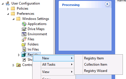 As this is as simple as a registry key then you can easily implemented it as a Group Policy Preferences Registry Extension setting. To do this open a Group Policy Object that targets the users that you want to enable/disable the power button for and then navigate to User Configuration > Preferences > Windows Settings then right click Registry and go to New > Registry Item (see below)