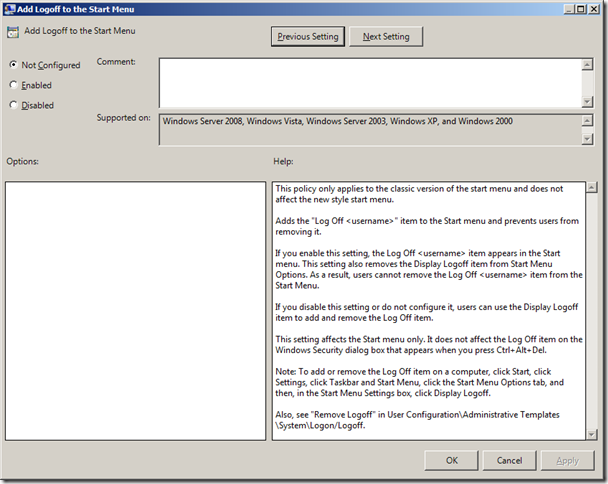 Continue Reading βThis weeks simple Group Policy Setting of the Week (GPSW) is called "Add Logoff to the Start Menu" which can be found under User Configuration > Policies > Administrative Templates > Start Menu and Taskbar. This option adds the "Log Off