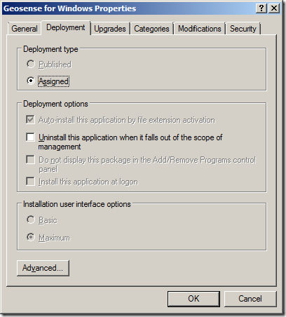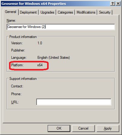 Below I will show you how to prevent the deployment of the example application the “Geosense for Windows†to computer running Windows x64. Now this program is a good example as it come in both x86 and x64 bit versions as it comes with software-driven location sensor driver for Windows 7. Drivers are of course one of the few types of x86 applications you can install on a x64 versions of Windows. You may also want to use this option if you have a high performance x64 version of an application that can take advantage of the system with greater than 4gb of ram.